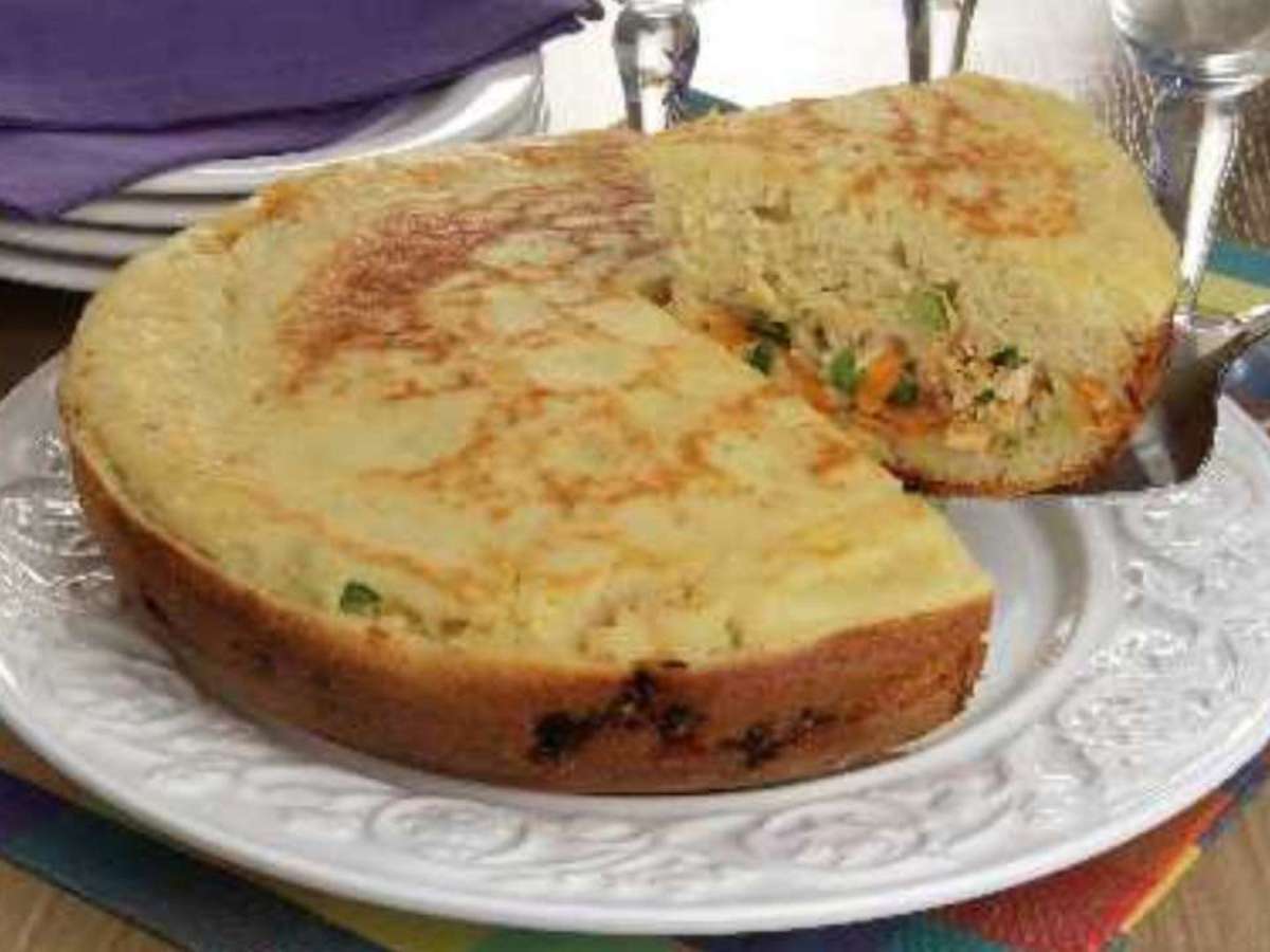 - Transfira para um prato e sirva a torta em seguida.