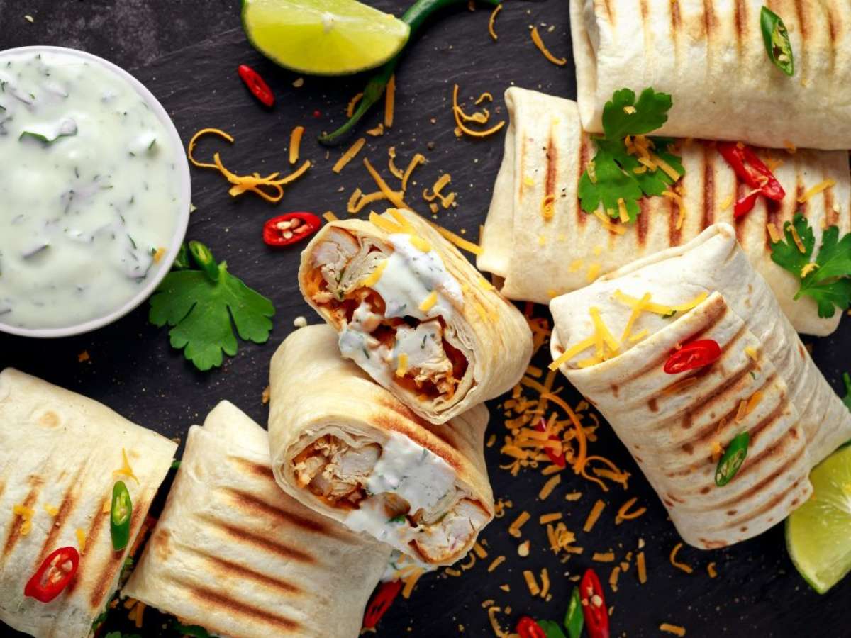 Wrap de mandioca caseiro com recheio de frango e molho fácil