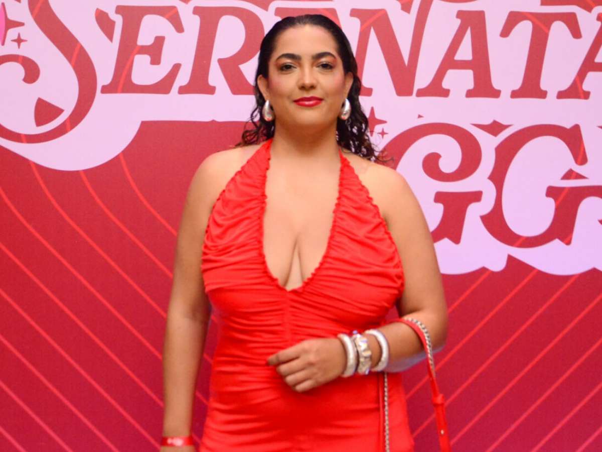 Eita! Camila Moura, ex de Lucas Buda, causa com look vermelho e decote revelador em gravação do DVD da Gloria Groove. Fotos!