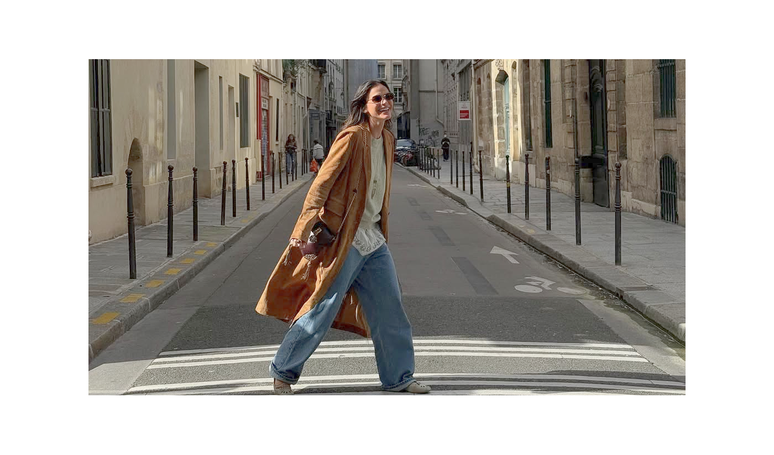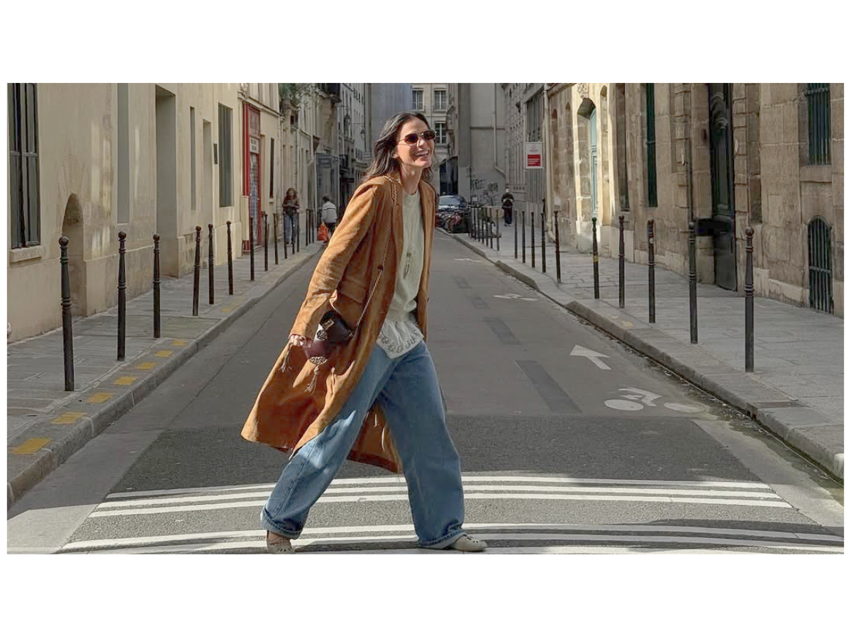 Ao escolher o sapato para compor um look urbano e sofisticado, Bruna mostrou como as sapatilhas voltaram a ser protagonistas no street style. A cor verde-hortelã, suave e moderna, quebrou a neutralidade do visual e trouxe frescor à produção, equilibrando elegância e leveza.