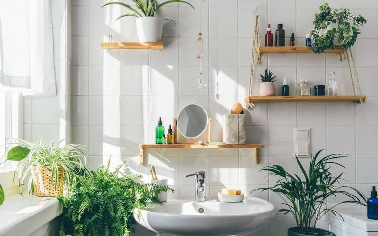 Plantas trazem vida a qualquer ambiente: da sala de estar até o corredor, da cozinha ao escritório e no banheiro também! Elas não apenas dão um toque natural, como também ajudam a criar aquela atmosfera relaxante que todos precisamos nesse espaço.
