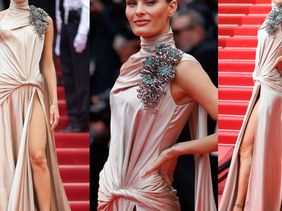 Isabeli Fontana é uma das primeiras brasileiras a marcar presença na 78ª edição do tradicional festival de cinema de Cannes, na qual frequenta desde 2016. Para a ocasião, foi escolhido um vestido feito sob medida para ela assinado por Nicola Jebran no estilo Goddess Core com uma faixa esvoaçante e detalhes drapeados, sapatos Aquazzura.