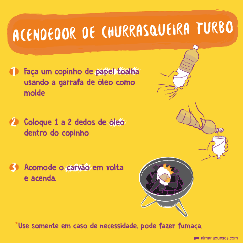 Essa última, inclusive, já ensinamos por aqui. Veja a seguir outras dicas que rodaram no Almanaque SOS para acender a sua churrasqueira com facilidade: