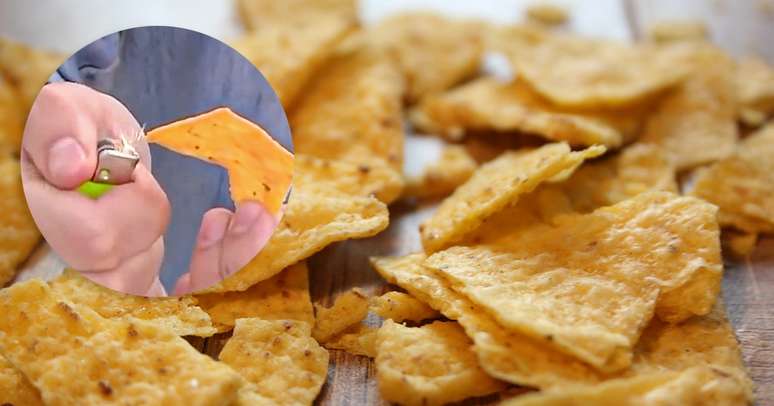 No teste usamos Doritos, porém o teste também irá funcionar com outras marcas de salgadinhos, como Fandangos e Cheetos. O que facilita a ignição são alguns ingredientes específicos contidos nesses alimentos, explicaremos os detalhes mais à frente neste artigo.
