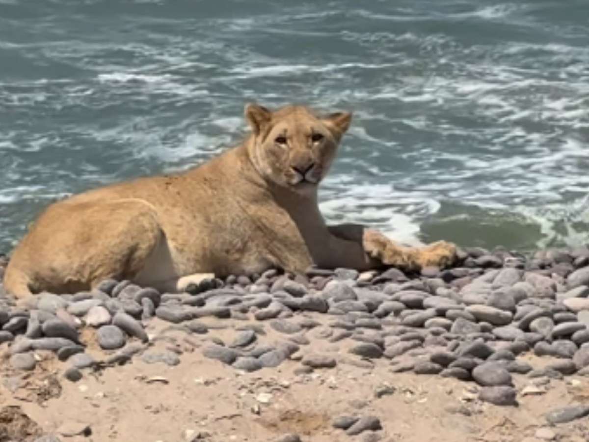 Fenômeno raro: leões abandonam dunas e aprendem a viver na praia