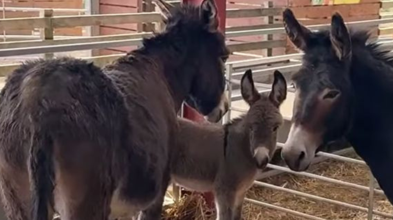 Filhote de burro ganha duas mães após 'parto único no mundo'