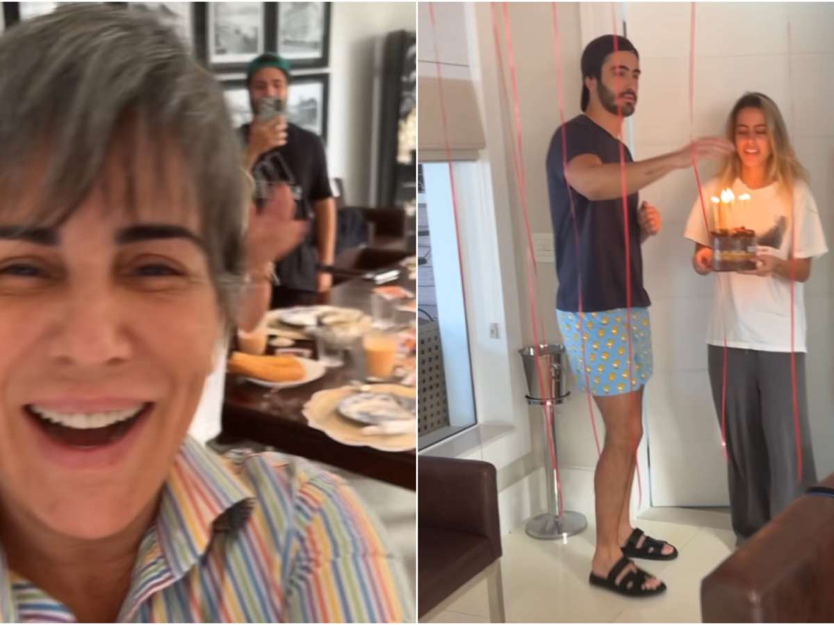 Com todos reunidos, os filhos Bento e Ana surgiram com um bolo de chocolate e velas acesas em homenagem à mãe coruja. Em coro, os familiares e amigos de Glória Pires cantavam "Parabéns a Você". "Vocês são demais, gente! Que isso! Que sonho!", disse a atriz, emocionada.