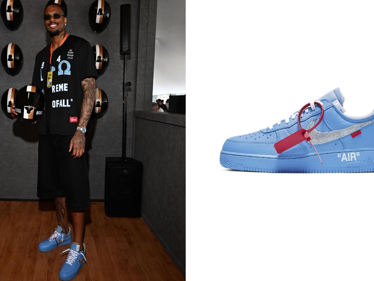 O modelo utilizado por Carlos Miguel é um Nike Air Force 1 Low Off-White MCA University Blue, lançado em 2019