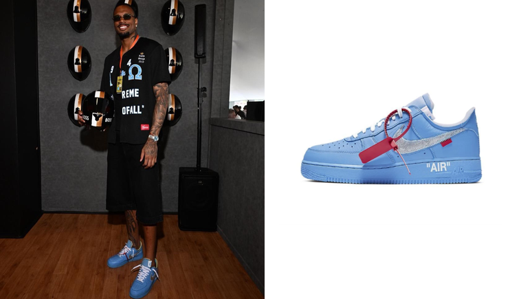 O modelo, um Nike Air Force 1 Low Off-White MCA University Blue, é bastante raro. Criado pelo estilista e fundador da marca italiana Off-White, Virgil Abloh, o tênis foi lançado em 2019.