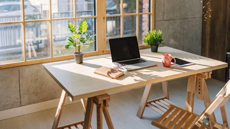 Muito presentes em móveis de madeira, pisos e tecidos, os tons terrosos ajudam a criar um home office funcional sem perder o conforto. Em espaços pequenos ou com pouca luz natural, o ideal é evitar versões muito escuras para não pesar visualmente.