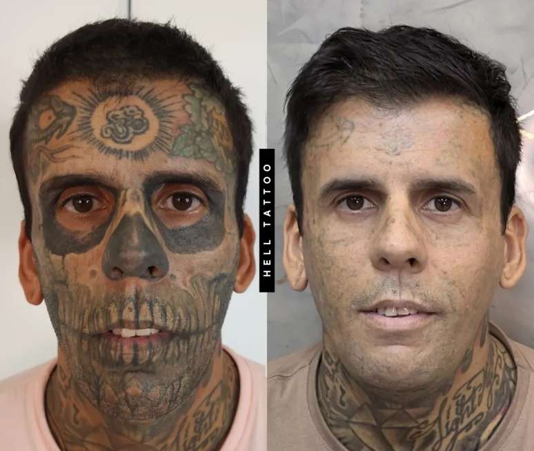 O homem que chegou a ser considerado o "mais tatuado do Brasil" passou, na quarta-feira, 25, pela sexta sessão de remoção a laser dos desenhos que cobrem o rosto. O procedimento foi realizado em um estúdio especializado em Franco da Rocha, antes de Leandro de Souza embarcar para uma nova etapa da vida em Petrolina, onde irá estudar pelos próximos quatro anos.