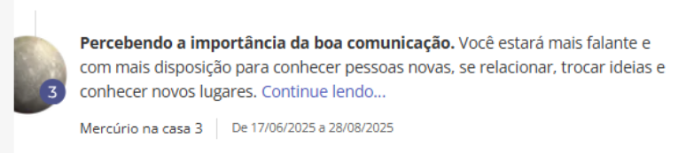 - Na sua lista de trânsitos, procure por Mercúrio. Vai aparecer: "Mercúrio na Casa …".