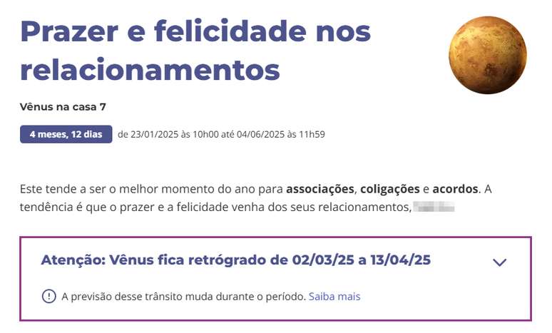 - Então, procure nos trânsitos o de "Vênus na Casa…". Na imagem abaixo, por exemplo, a pessoa está com Vênus na Casa 7.