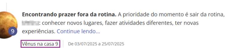 - Então, procure nos trânsitos o de "Vênus na Casa…". Na imagem abaixo, por exemplo, a pessoa está com Vênus na Casa 9.