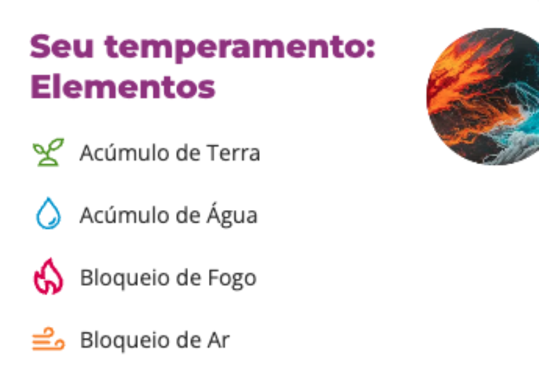 Por exemplo, você pode ser do signo de Leão, que é do elemento Fogo, mas, ao mesmo tempo, ter bloqueio de Fogo no Mapa.