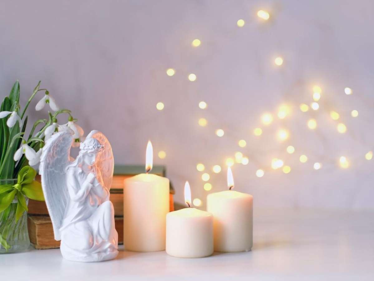 A vela: Acenda uma vela branca (cor da pureza e paz) em um local alto, acima da sua cabeça. Nunca coloque velas de anjo no chão.
