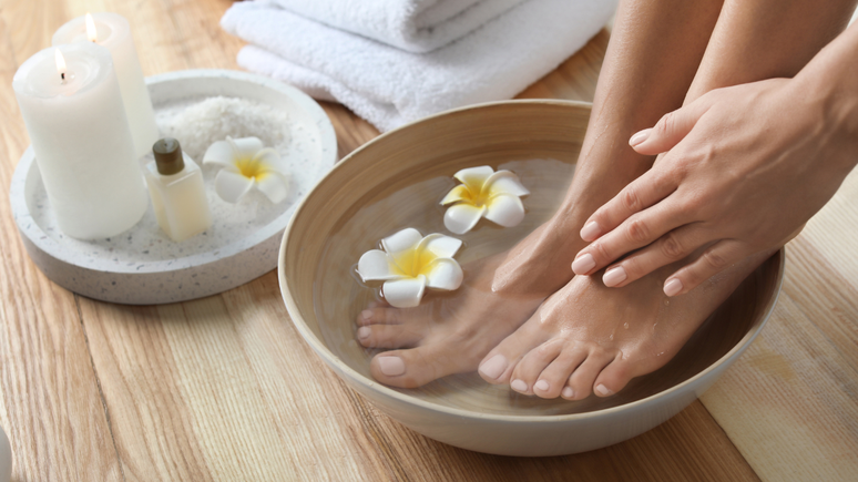 O escalda-pés é uma prática milenar. Nossos pés possuem terminações nervosas ligadas ao cérebro. Assim, quando os mergulhamos em água morna, sentimos um relaxamento imediato.