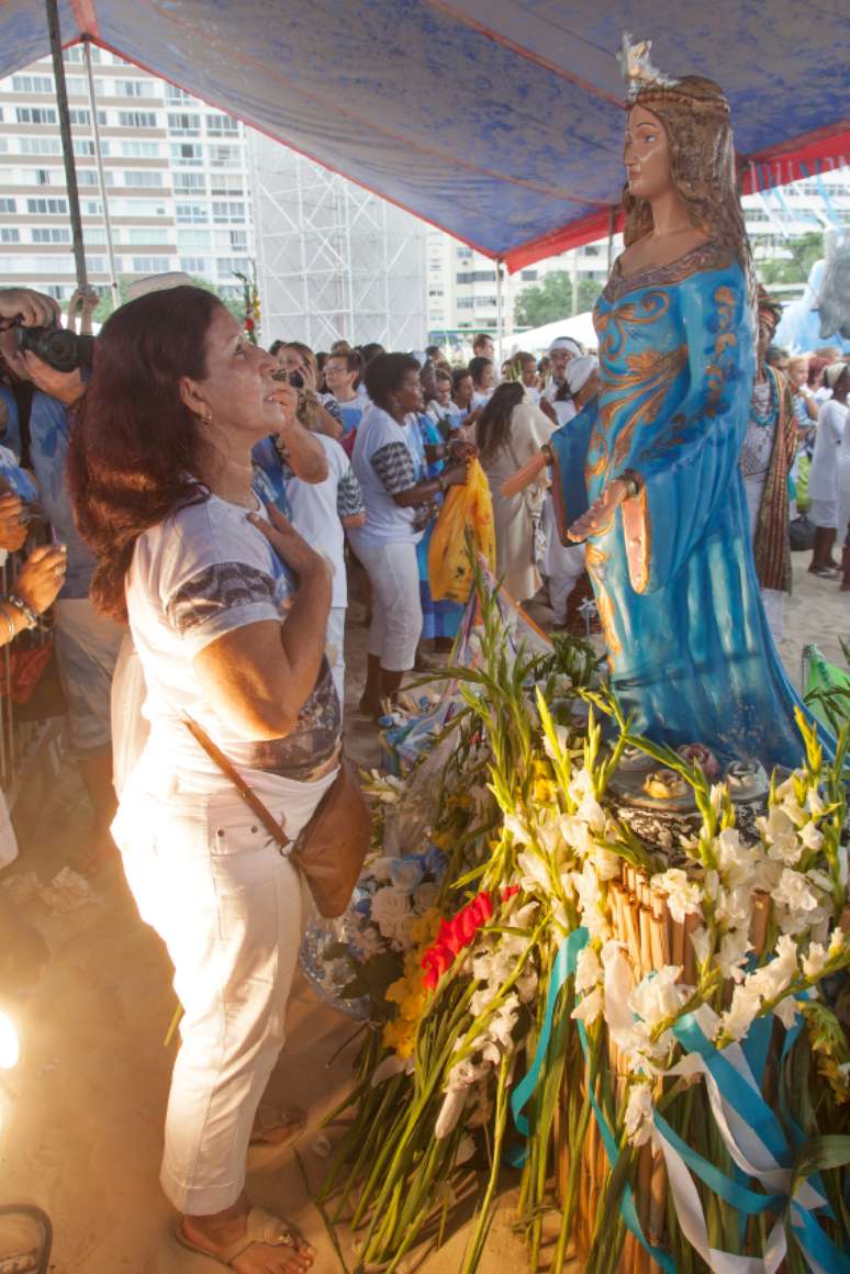 Que os lampejos que emanam de vosso diáfano manto de estrelas venham, como benéficas vibrações espirituais, aliviar os males, curar aos doentes, apaziguar os nossos irmãos revoltados, consolar os corações aflitos. Que as flores e oferendas que depositamos em vosso tapete sagrado, sejam por vós aceitas e quando entrarmos nas águas para vos ofertá-las seja as ondas do mar portadoras de vossos fluídos divinos. Fazei, Senhora Rainha das Águas, com que a espuma das ondas em sua alvura imaculada traga-nos a presença de Oxalá, limpe os nossos corações de todas as maldades e malquerenças.