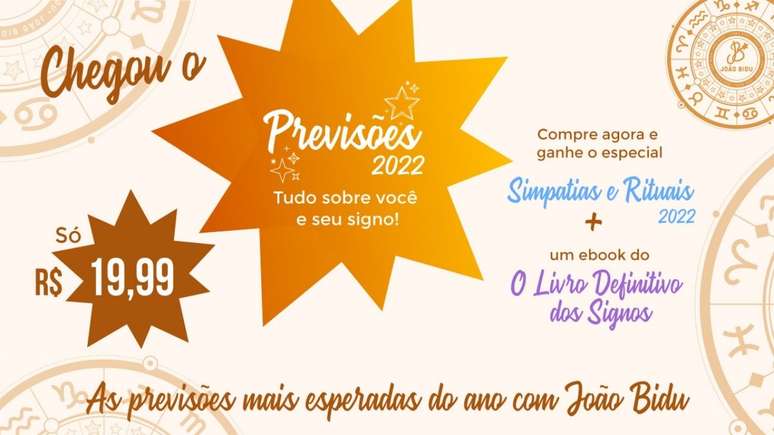 Quais os meses mais propícios para as finanças? Será que o ano será favorável para o seu aprimoramento pessoal? E como ficam os assuntos do coração em 2022? A sorte vai sorrir para você? Todas essas dicas é possível encontrar em Previsões 2022, que ainda trata das influências planetárias no seu signo e nos signos das pessoas que fazem parte da sua vida.