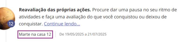 - Procure pelo trânsito de Marte. O planeta estará em uma casa astrológica - na imagem abaixo, por exemplo, Marte está na Casa 12.