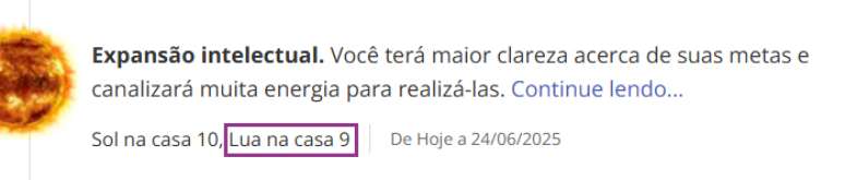 - Então, ao visualizar seus trânsitos astrológicos ativos neste momento, procure pela Casa onde a Lua estará no dia 24/07.