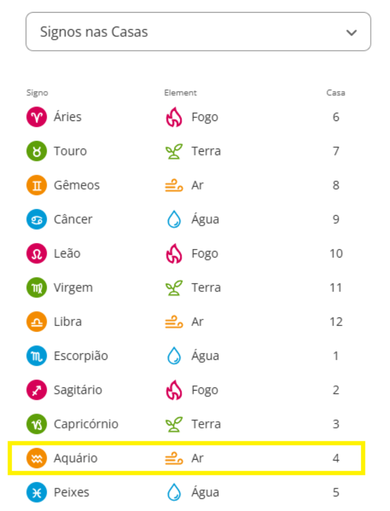 No exemplo abaixo, veja que a pessoa tem Aquário na Casa 4. Portanto, são os assuntos dessa área da vida que podem ser revisados por ela durante Plutão retrógrado.
