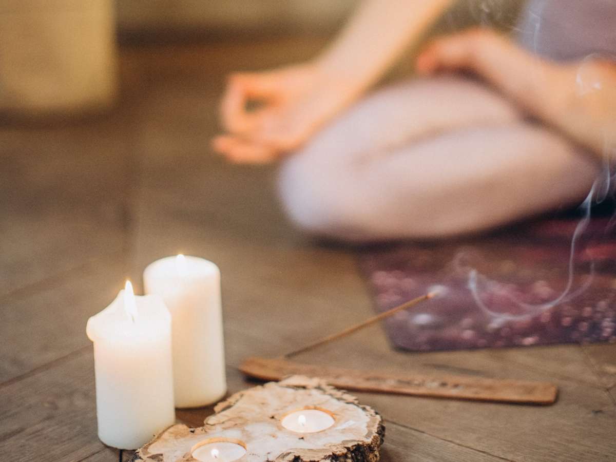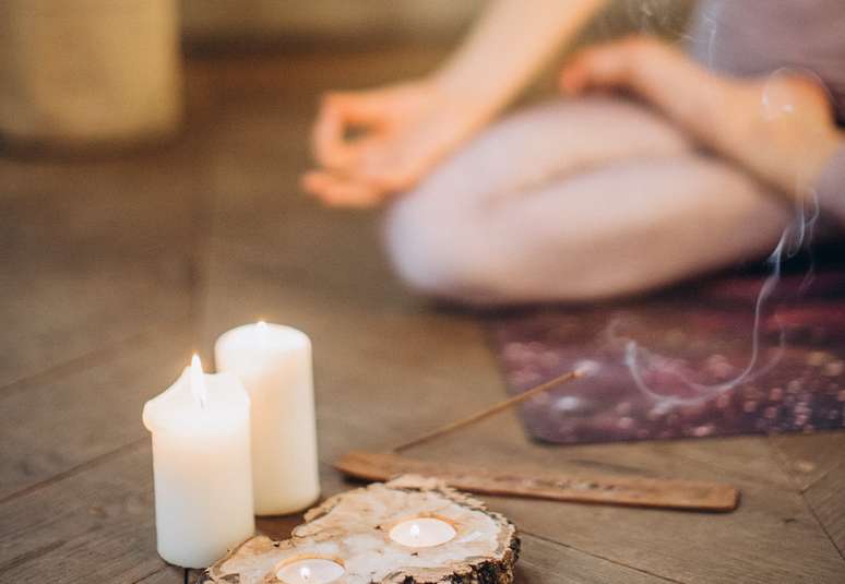 - Crie o clima de conexão. Coloque uma música de relaxamento e perfume seu ambiente. Ou seja, pode ser um incenso, óleos essenciais ou uma vela aromática.