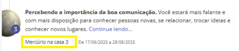 - Veja os trânsitos ativos e procure por "Mercúrio na Casa…"