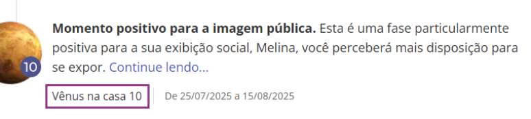 - Então, procure nos trânsitos o de "Vênus na Casa…". Na imagem abaixo, por exemplo, a pessoa está com Vênus na Casa 10.
