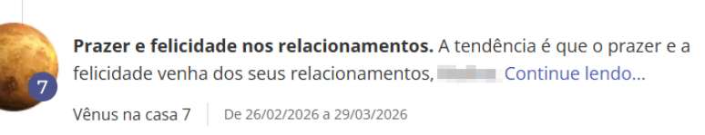 - Quando você clicar no seu trânsito, leia as previsões personalizadas para você nesta fase do ano.