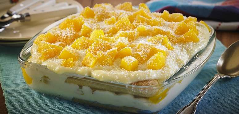 Dica da chef: Se desejar, umedeça os biscoitos com a calda dos pêssegos.