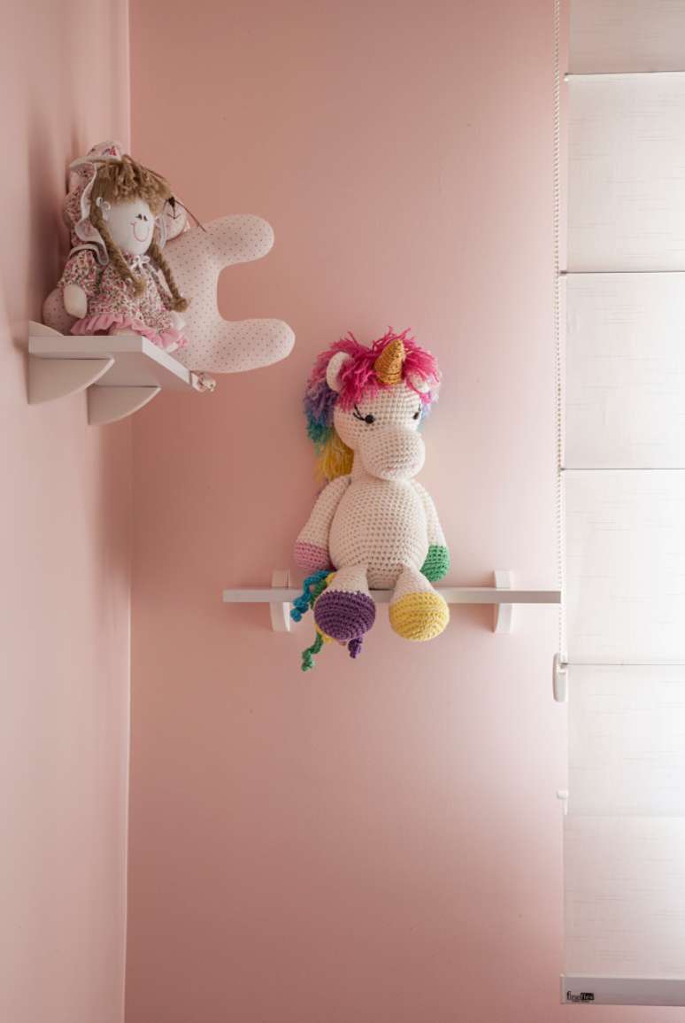 Almofadas ou mantas em camas de apoio, barras de toalhas, cestinhas nas estantes e bichinhos de amigurumi na decoração podem ser itens que trazem conforto para a decoração sem ficar, de fato, em contato constante com o bebê.