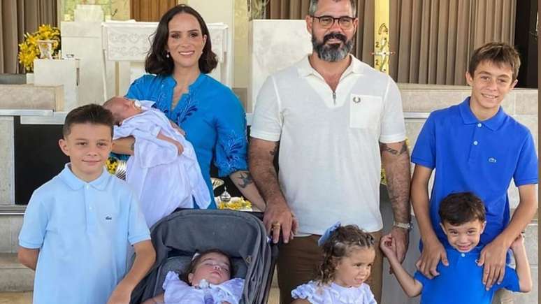 "Desde esse dia que em todas as missas que participei, em todos os terços que rezei, pedi a Deus que nos desse a oportunidade de apresentá-la à Santa Igreja. Esse dia chegou. Deus é fiel", continuou o ator.