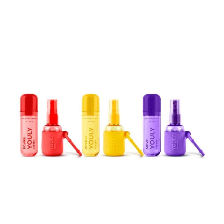 Kéfera Buchmann e a Ciclo Cosméticos criaram Youly, uma linha de body splashes focada no mercado wellness. A linha chega em três versões exclusivas, criadas para acompanhar quem tem o movimento como estilo de vida: Intense Youly, um oriental envolvente com notas de âmbar, baunilha e musgo de carvalho; Move Youly, um amadeirado frutal com blend luminoso, baunilha de Madagascar e âmbar; e Power Youly, um oriental amadeirado que combina pimenta-preta, jasmim e baunilha.
