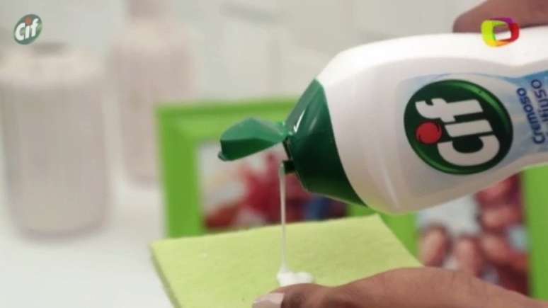 2 – Passe suavemente a esponja na mancha. CIF Cremoso é eficiente até nas sujeiras profundas.