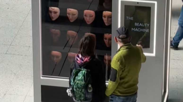 'Máquina da beleza' vende 'rostos humanos' em crítica a padrões estéticos nas redes sociais