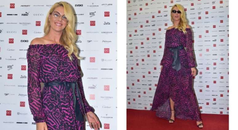 Ana Hickmann deu destaque aos ombros com longo de decote ciganinha, na quarta-feira (20), São Paulo. Escolheu o look para marcar presença na feira óptica Expo Visão e, por isso, exibiu tanto óculos de grau quanto de sol. ambos da parceria da apresentadora com a GO Eyewear.