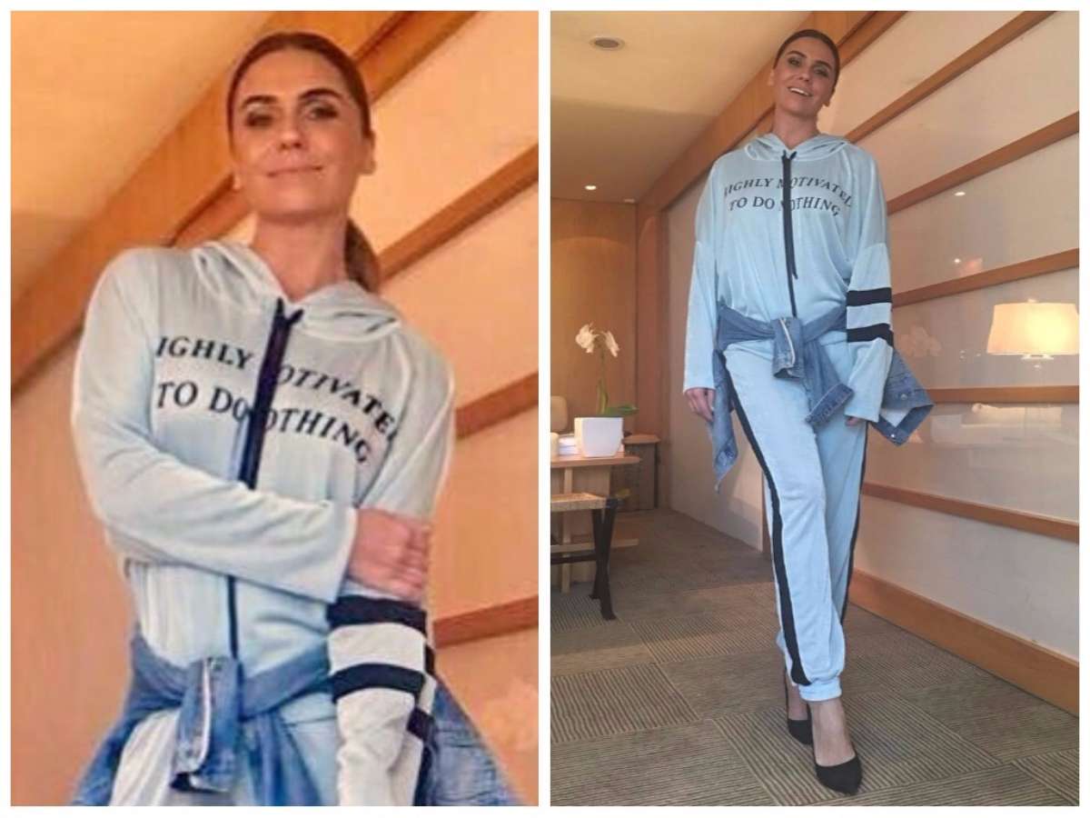 A roupa com ar esportivo ganhou status fashion e saiu da academia direto para as ruas. Uma proposta queridinha do momento é usá-la com salto alto, como fez Giovanna Antonelli. A atriz publicou em seu Instagram a foto de um look composto por calça jogging (R$ 590) e blusa com capuz (R$ 630), da TIG, que contrastou com o ar social do escarpim preto. A produção ficou ainda mais descolada com a jaqueta jeans amarrada na cintura. O styling é de Rodrigo Grünfeld.