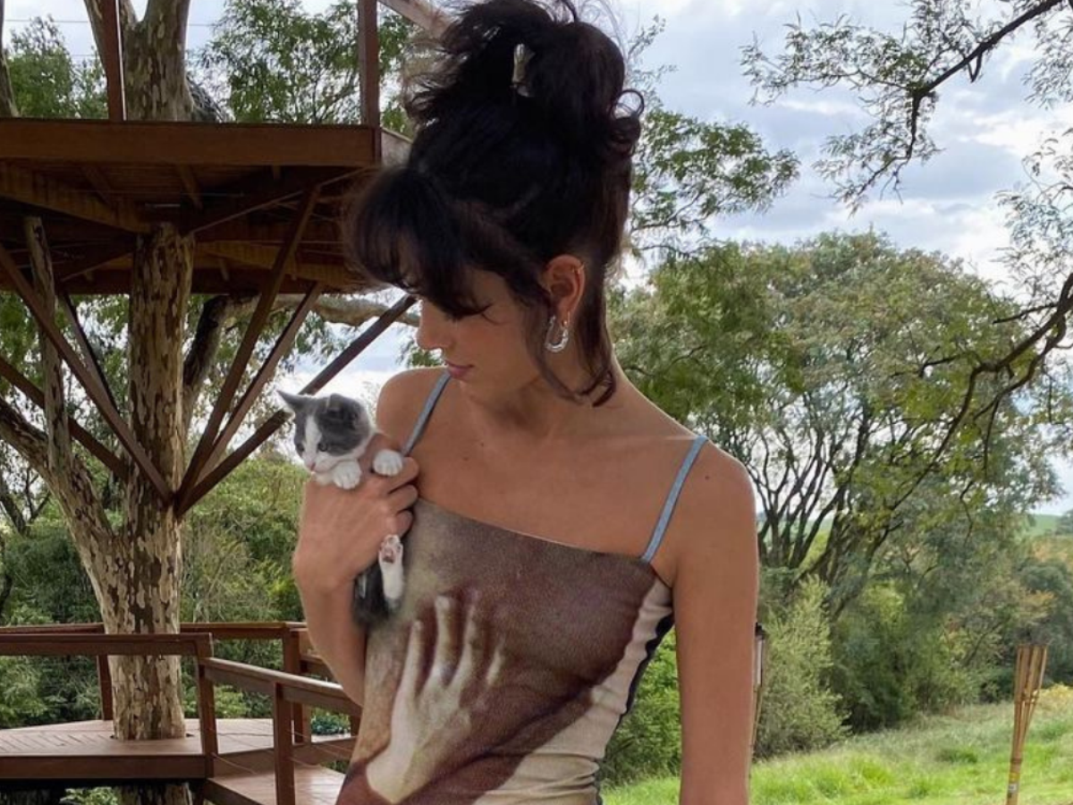 A ex-BBB Camilla de Lucas vestiu a faixa que ganhou logo que saiu do programa, durante o papo com Ana Clara, na Rede BBB, com look preto curto, que é tendência, e bota laranja com textura de jacaré. Veja como o calçado se destaca no look.