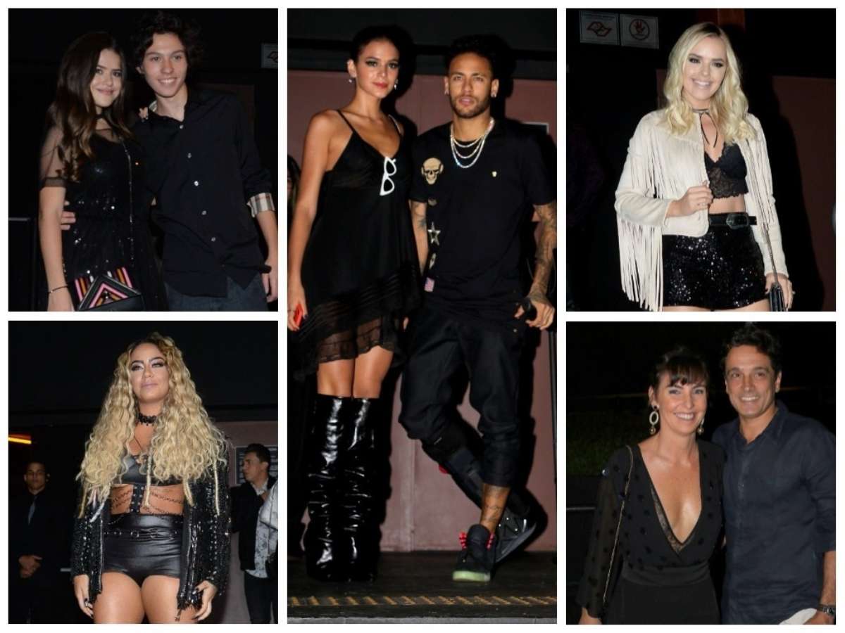 Bruna Marquezine e Neymar Jr. foram juntos ao aniversário de 22 anos da irmã do jogador, Rafaella Santos, na segunda-feira (19), São Paulo. A atriz chamou atenção com look preto de mais de R$ 36 mil, composto por vestido tipo camisola, bota over the knee, óculos de sol gatinho e bolsa em formato de coração. Entre os convidados também estavam Thaeme, Maisa Silva e Glenda Kozlowski. Confira detalhes dos visuais: