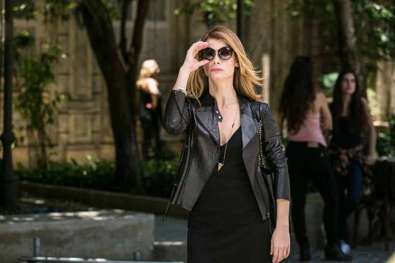 Na sequência, jaqueta preta da Diana (Alinne Moraes), de "Rock Story". Marca: Caroline Rossato. Preço: R$ 980. Informações: (21) 2224-1927.