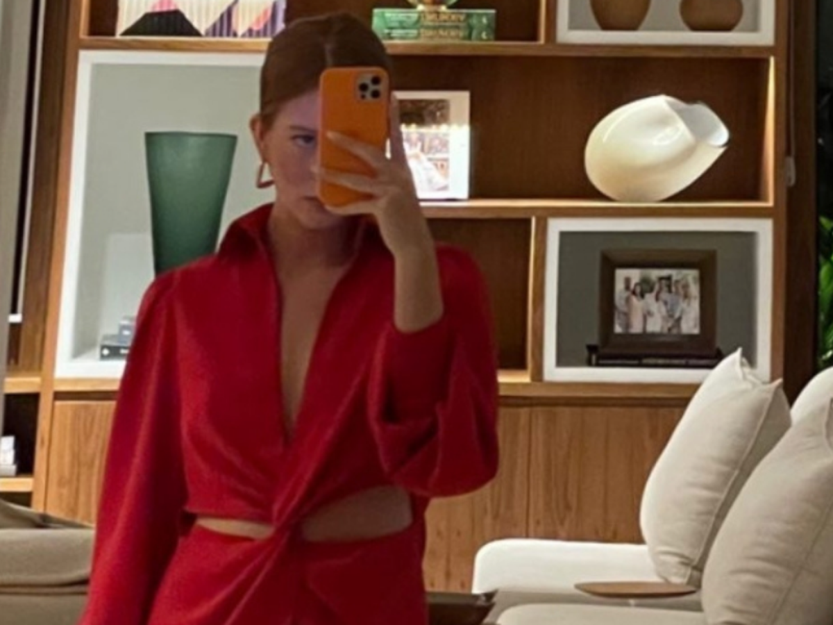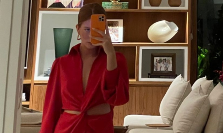 Marina Ruy Barbosa vestiu a cor queridinha para o Natal: vermelha. A camisa com detalhe torcido no centro e recortes laterais (R$ 697) combinou com short (R$ 537). As peças são da marca dela, a Ginger.