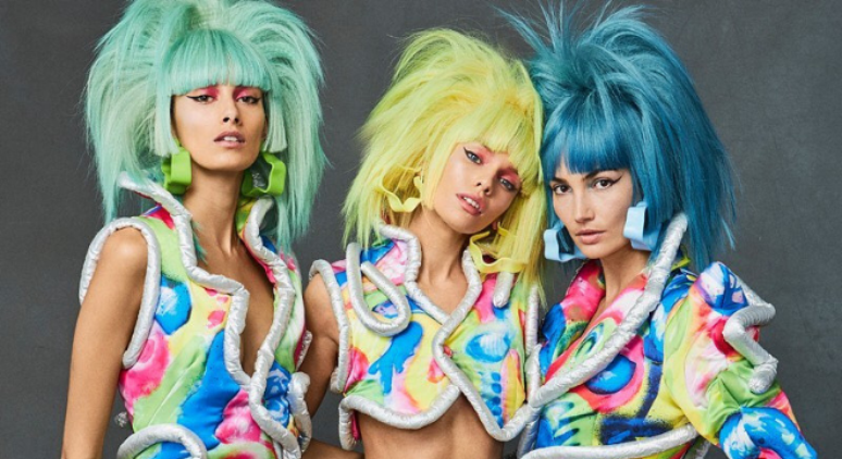 O estilista Jeremy Scott imaginou uma banda de rock intergaláctica para sua coleção primavera-verão 2020, com uma explosão de cores.