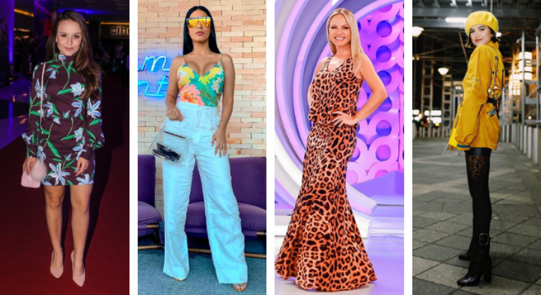 Eliana mede 1,62 m e tem como tem como stylist Thidy Alvis, que sempre aposta em looks que alongam. Aqui, a apresentadora usa vestido longo com animal print e detalhes que conferem altura.