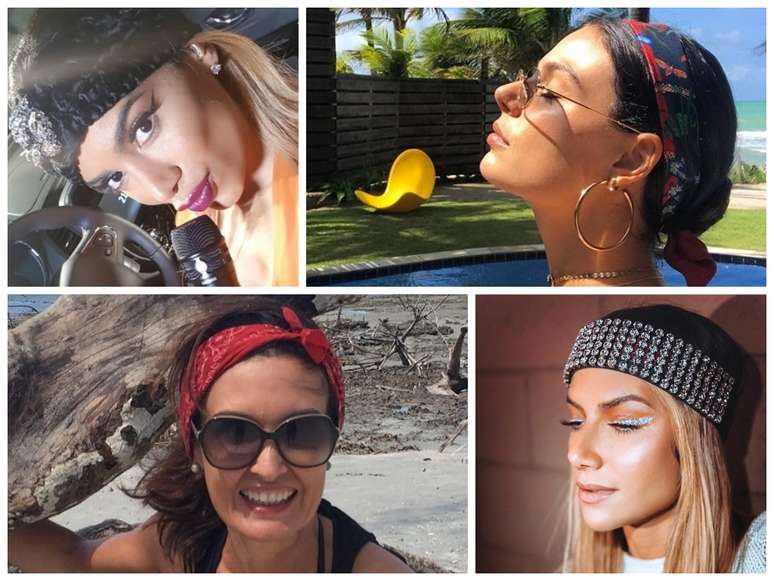 O acessório do momento vem direto dos anos 90. As faixas de cabelo mantêm o penteado e ainda enchem o visual de estilo. Os lenços estampados com laços conferem ar mais casual e podem ser usados tanto na praia quanto em looks urbanos e despojados. A sofisticação fica por conta dos modelos com brilhos e pedrarias. Inspire-se nos visuais de Fátima Bernardes, Isis Valverde, Giovanna Ewbank e Anitta: