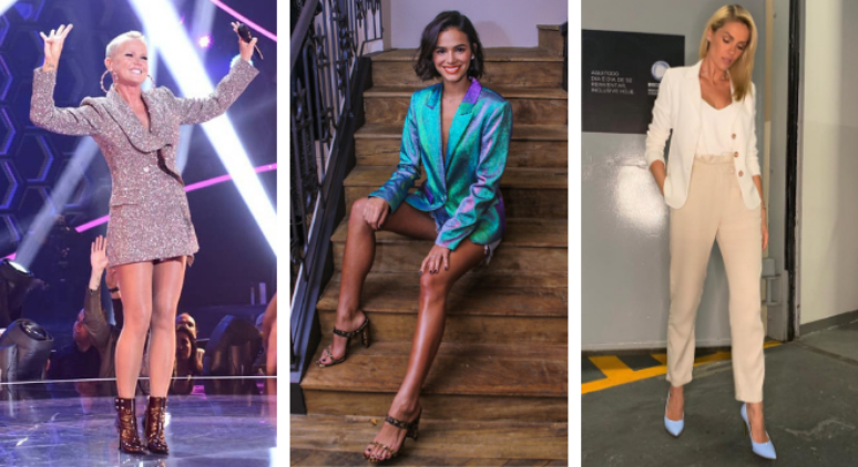 Na estreia de do reality show "The Four Brasil", Xuxa escolheu um blazer-vestido, acompanhado de bota curtinha. O modelo carrega três tendências bem atuais.