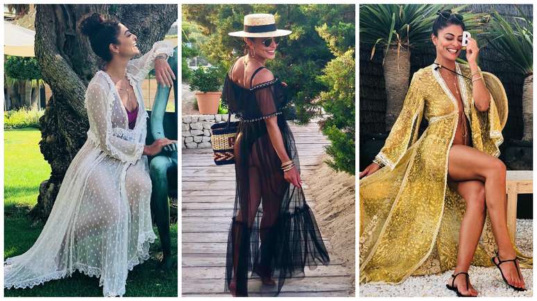 A morena combinou as peças branca, preta e dourada em dias diferentes e com complementos também diferentes: maiôs e biquínis. As peças vão da praia à piscina sem susto. Claro que se você não quiser ousar muito na transparência e na pele à mostra, dá para compor com bodies e hot pants por baixo.