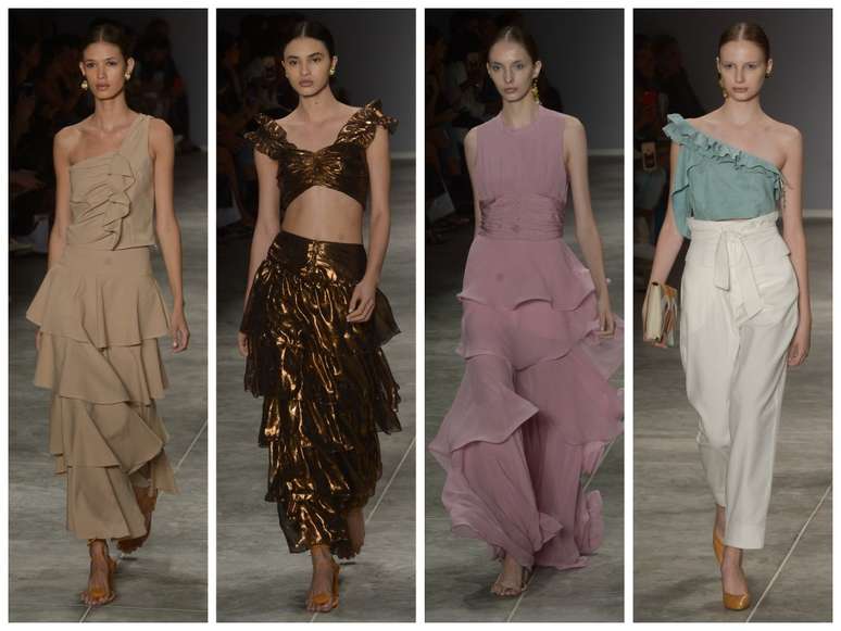 O babado é o detalhe do inverno. Com uma coleção leve, a grife Lilly Sarti apostou no recurso em blusas, vestidos e saias. A apresentação no São Paulo Fashion Week começou com rosa e mostarda e terminou com dourado, passando por beges e azul-claro.