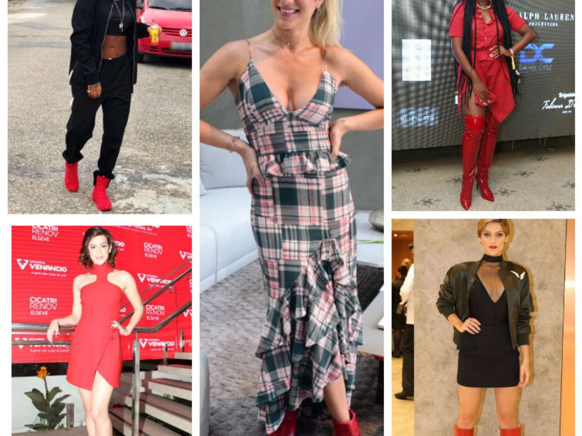 Giovanna Ewbank usou recentemente a mesma bota vermelha em dois dias seguidos. Um no lançamento da coleção de calçados da Dumond e outra na Mostra Artefacto. A apresentadora mostrou como o calçado é eclético: vai bem com look preto básico e com vestido xadrez longo.