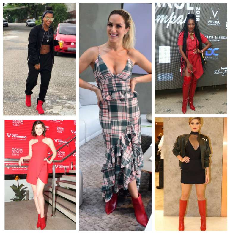 E só dá elas. As botas vermelhas, que deram as caras nas passarelas no ano passado, ganharam desde então o coração e os pés das famosas e mantêm-se entre os calçados preferidos. Os comprimentos dos canos variam dos mais curtos aos over the knee. As botas esquentam o visual e se sobressaem nos looks.
